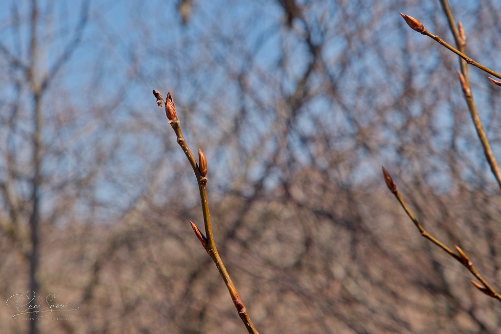Other bushes along the roadside are also showing their desire to get on with the season, although capturing them waving in the north wind was definitely a challenge. Spring in the Maritimes is a fickle season teasing us with warmth and sunshine and then a bitter winter-like wind rushes in.