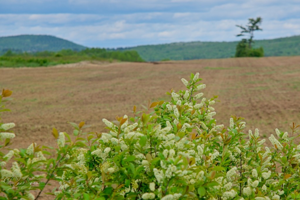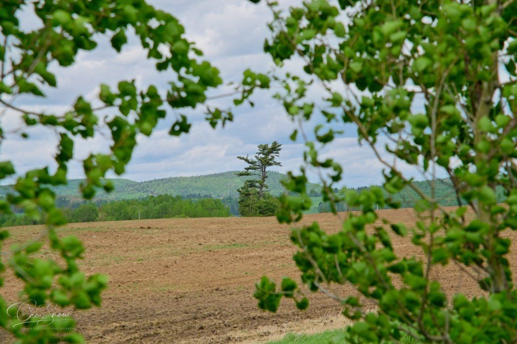 The solitary tree in the middle of the under-renovation hayfield truly stood out – on its own and framed by the roadside foliage.
