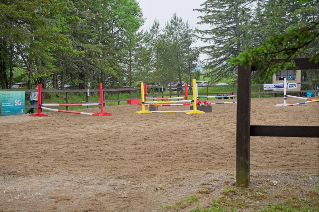 Every year the Hampton Riding Centre hosts a one-day horse show that is open to both students who take riding lessons at the Centre and other riders from the general area. Attendance usually ranges from 60 to 80 horse/rider combinations varying from young children and ponies to adults trying their skills at a show for the first time. Today began with foreboding skies, but the rain held off for most of the day. Since the Centre is near Saint John, NB, some of the famous fog drifted in and out but the mild temperature made it pleasant for horses, riders and spectators.