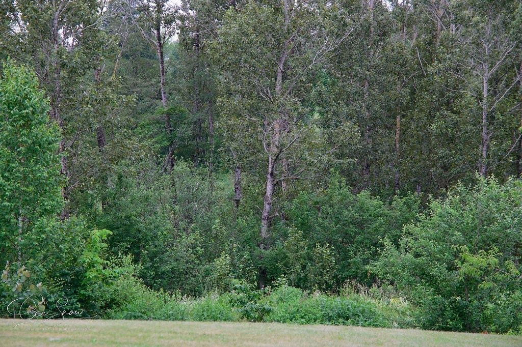 The trees and bushes between us and the main road have really filled in this year. They help to muffle the road noise (a bit) and filter out some of the odour of rural living when farmers fertilize their fields.