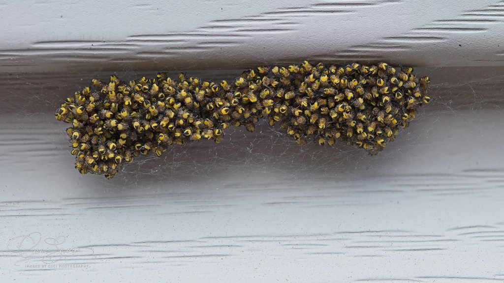The spider nest (top left) kind of creeped me out but seeing bees and some kind of black butterfly made up for it.
