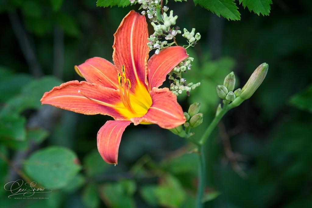 Earlier this spring we were treated to some lovely tulips rising from the debris. Today, it was two lilies – and apparently more to come. None of these were planted nor were they tended at all. They somehow managed to sow their own seeds and burst through the clutter of the underbrush to show off their beauty – standing in stark contrast to the foliage around them.