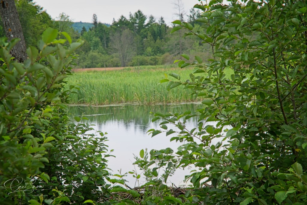 I walked down the road to the spot where beavers have built a dam creating a decent sized pond. It’s large enough for the beaver lodge and also to provide housing, shelter and food for a small family of geese. None of these were out and about when I stopped on the bridge to see what was going on.