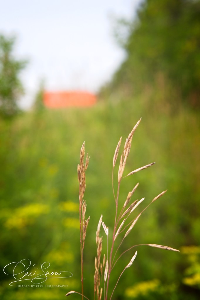 Walking back up the road, on the opposite side, I saw the bright red roof of my neighbour’s shed in the distance behind the tall grasses and shrubs.