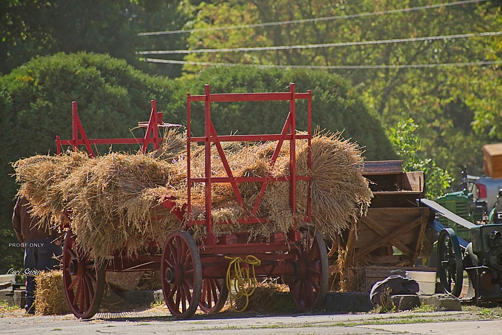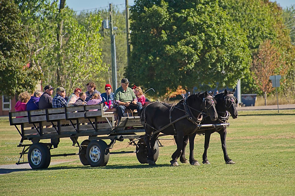 Next door, as part of the NB Agricultural Museum’s Harvest Days celebrations, people were enjoying wagon rides pulled by a pair of Percherons and watching demonstrations of old-tyme farming methods like threshing hay onto a wagon.