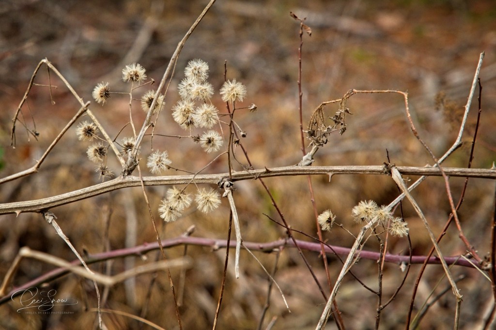 My main task was to act as a lookout and distract any passersby who might think we were tree thieves on private property (we weren’t). I walked a little bit down the road and spent a few minutes taking photos of the dried weeds and leaves at the roadside.