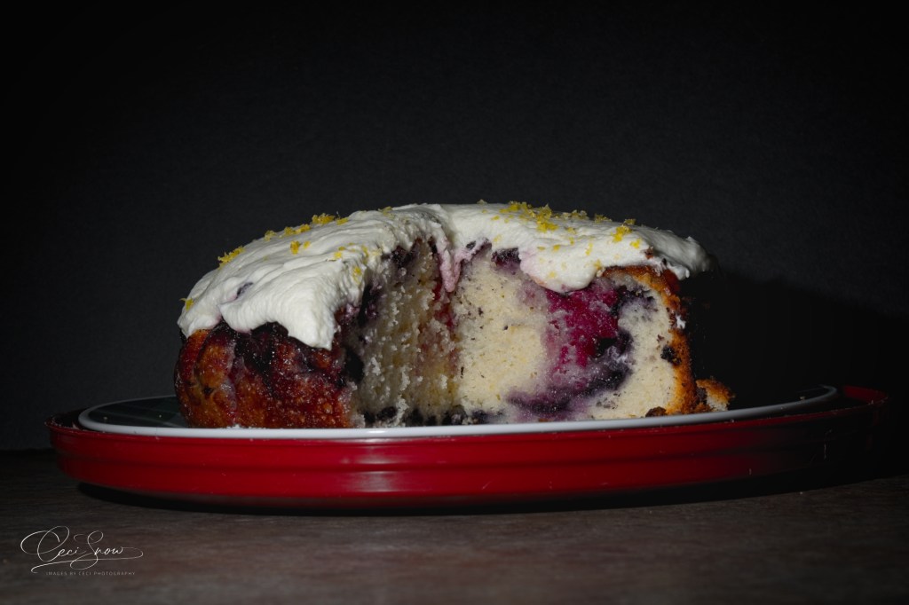 I baked yesterday (in case we lost our power). Today we’ve been sampling the lemon/blueberry cake. It’s rather good and probably won’t last long.